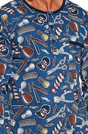 Koszula nocna męska- z krótkim rękawem – wykonana z wzorzystej bawełny- dekolt półokrągły zapinana na trzy guziczki- do kompletu szlafmycaSkład: 100% bawełna…