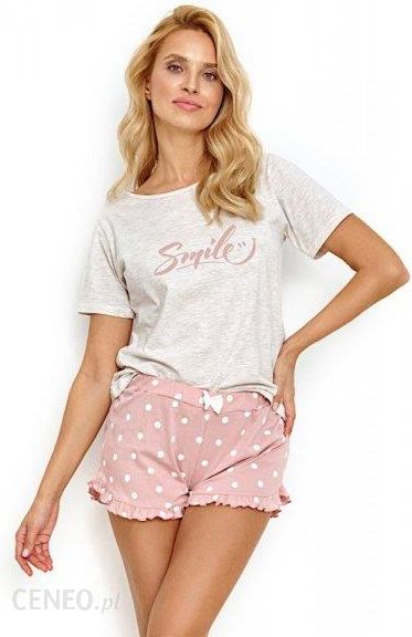 Letnia piżama damska- wysokiej jakości bawełna- koszulka z krótkim rękawem- dekolt półokrągły- spodenki krótkie, wzorzyste- w pasie ozdobna kokardka- nogawki obszyte falbankąSkład: kol.beżowy melanż-różowy jasny koszulka 92% bawełna, 8% poliester spodenki 100% bawełna kol.niebieski jasny 100% bawełna…