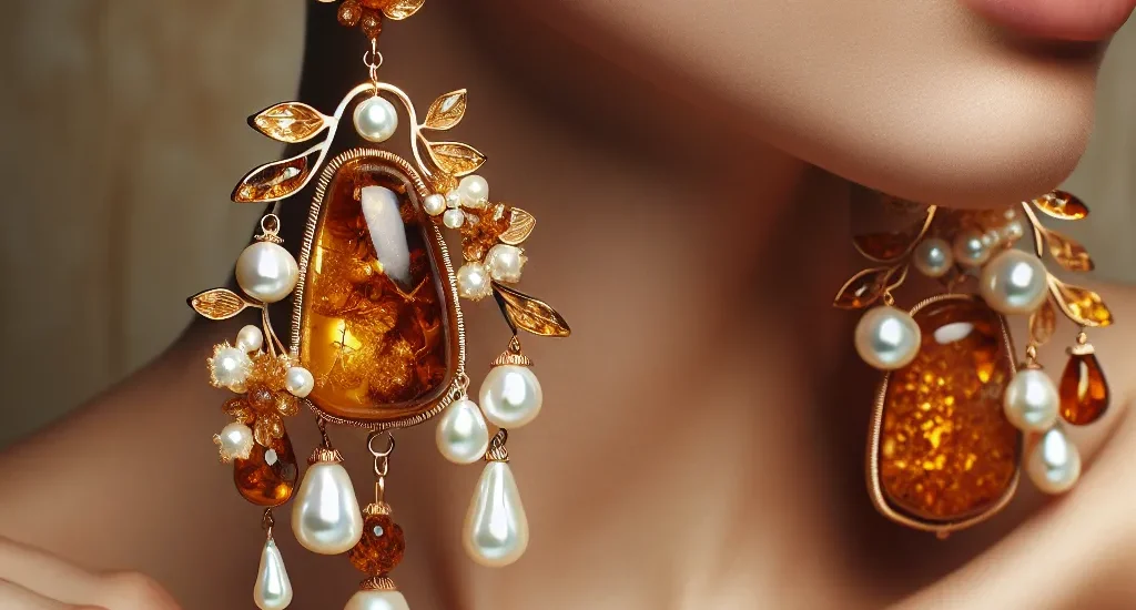 Wspaniałość natury: kolczyki z bursztynem, perłami i wdziękiem